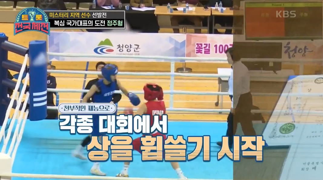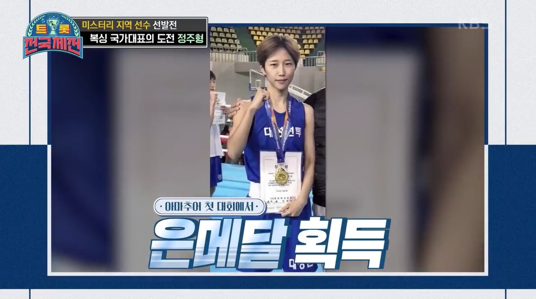 트롯전국체전 정주형 선수는 복싱 시작한지 1년만에 국가대표선수가 되었는데요. 아마추어 대회에서 은메달을 획득하였고, 천부적인 복싱 재능이 있어 각종 대회에서 상을 휩쓸며 국가대표 선수가 되었답니다.