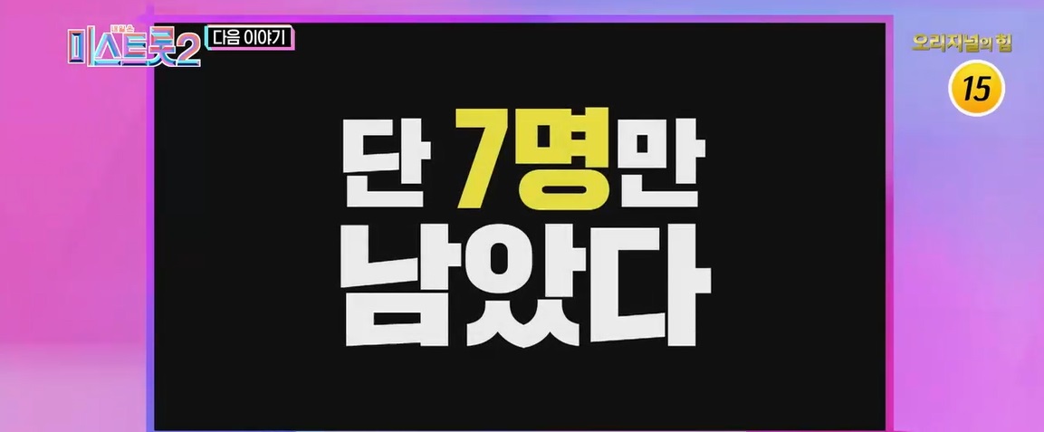 2월 18일 TV조선 10회방송 미스트롯2 결승 진출자 Top 7인 명단이 최종 발표되었습니다. 본선 3차에서 14명이 준결승전을 대결하여 결승진출자를 선정되었습니다.