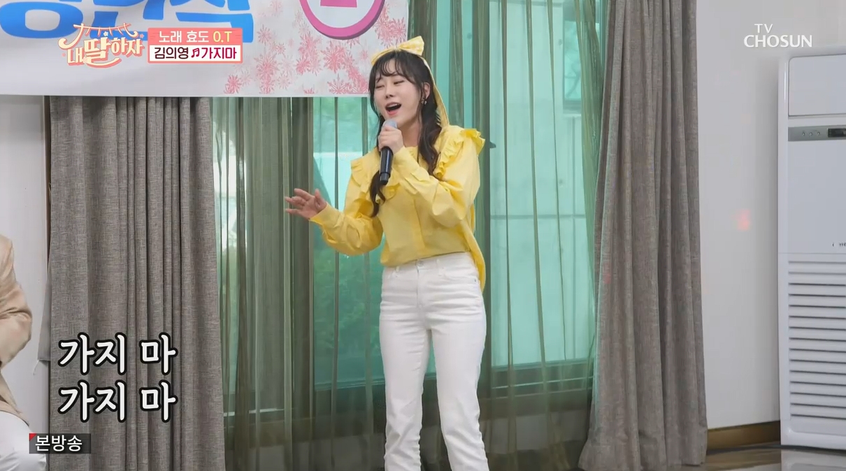 내 딸 하자 김의영 가수에게 신청곡은 가수 진성 원곡 '가지마' 노래를 신청곡으로 미국에 있는 딸이 한국에 있는 부모님에게 신청해 주었습니다.