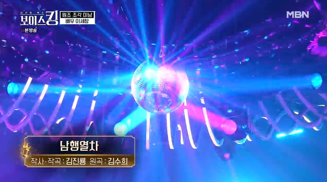배우 이세창은 이번 MBN보이스킹 1라운드에서 가수 김수희 원곡 '남행열차'를 선곡하여 불러주었는데 1라운드 결과는 크라운 3개를 받았습니다.